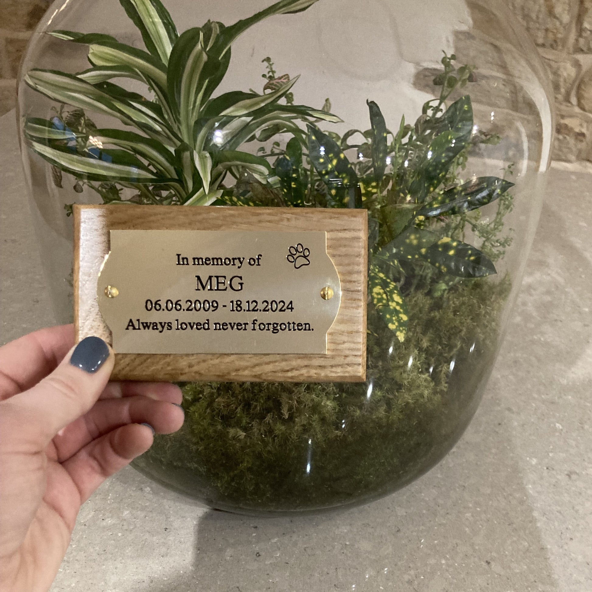 A beautiful brass plaque personalised to your request and mounted on solid oak.